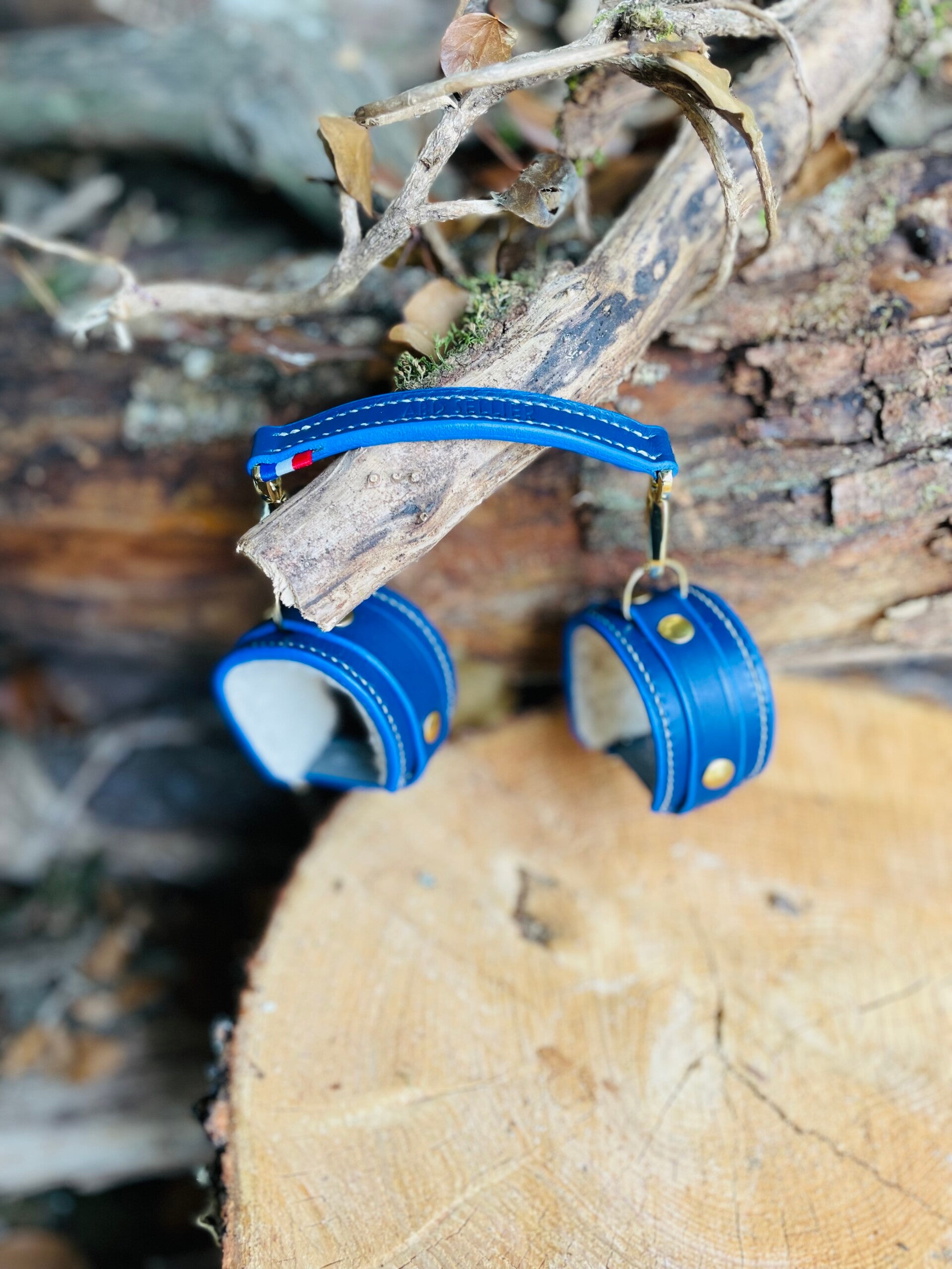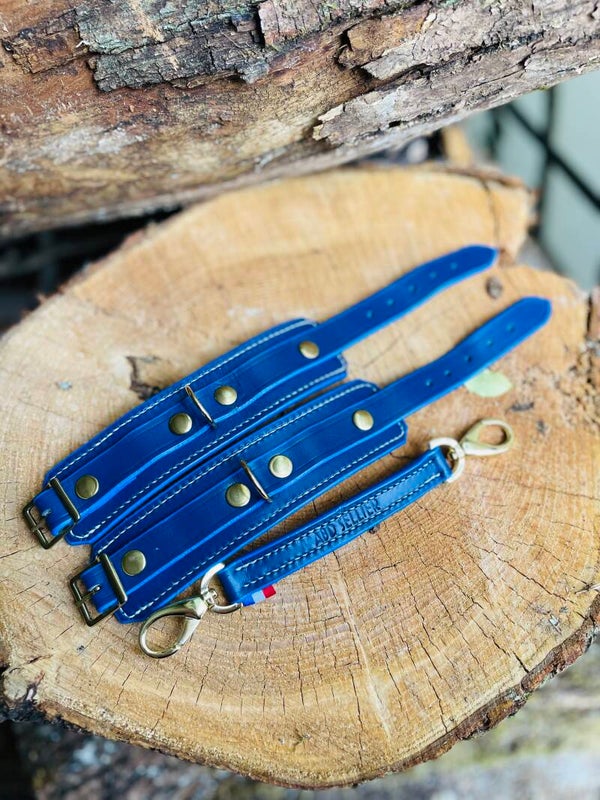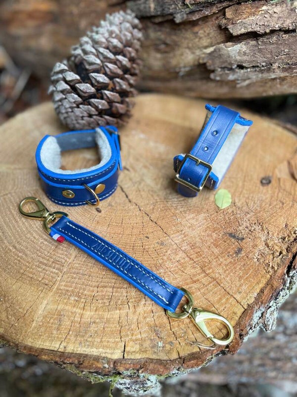 Luxueuses et élégantes menottes en cuir de bovin à tannage végétal, doublées en peau de mouton véritable pour un confort inégalé. Coutures entièrement réalisées à la main point par point au fil de lin ciré à la cire d'abeille.