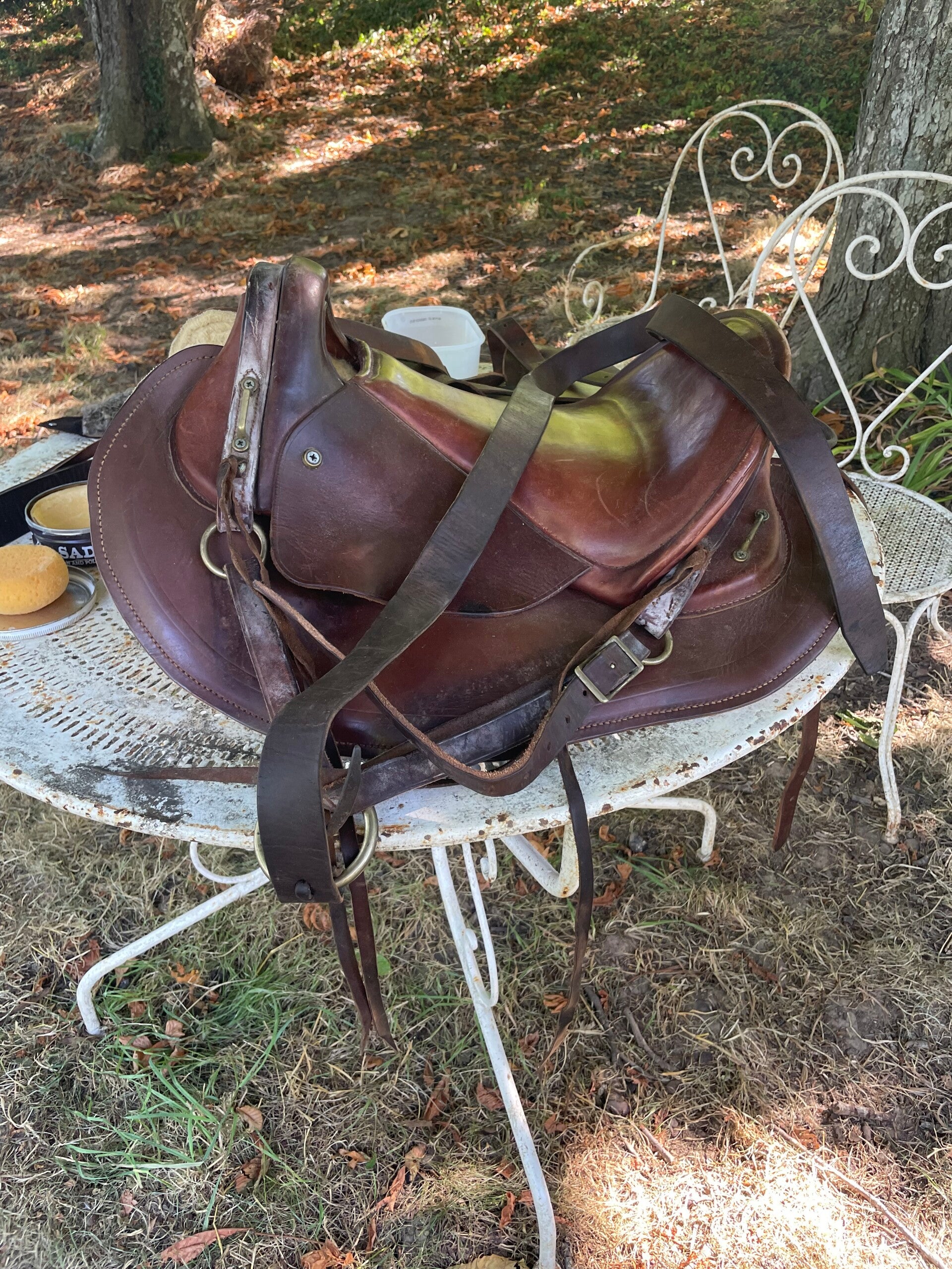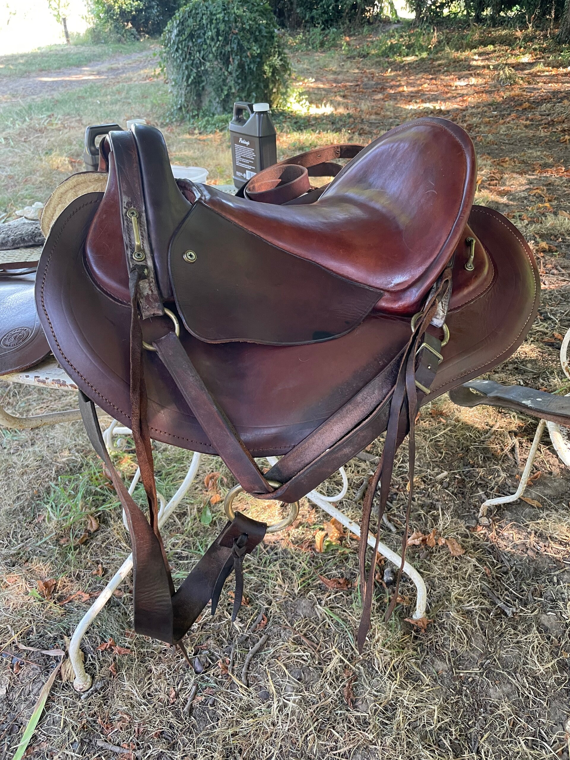 Vendue complète avec sangle, fenders, étrivières qui seront recousues avant la vente et étriers.