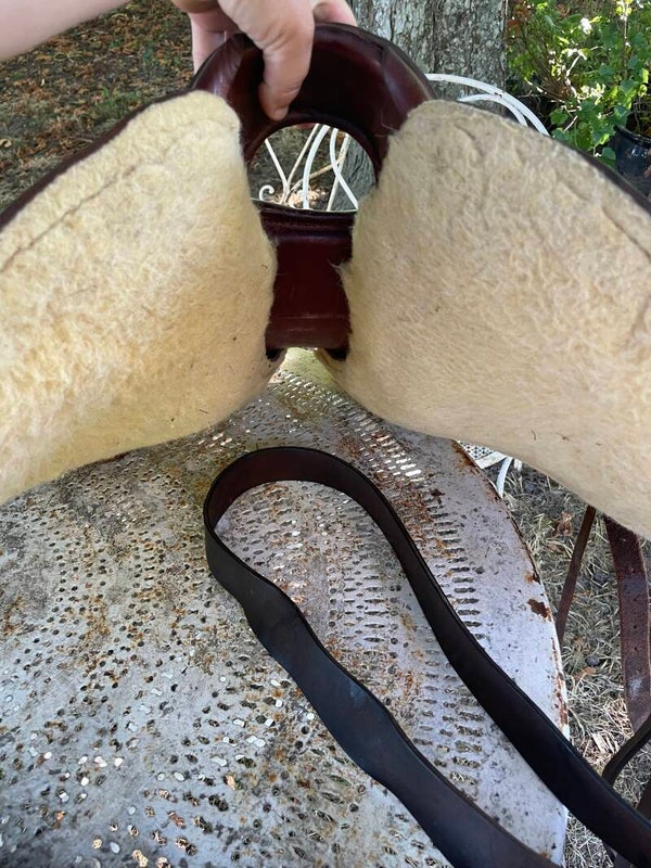 Selle prévue pour cheval avec de l'os, assez large, type quarter.