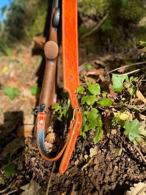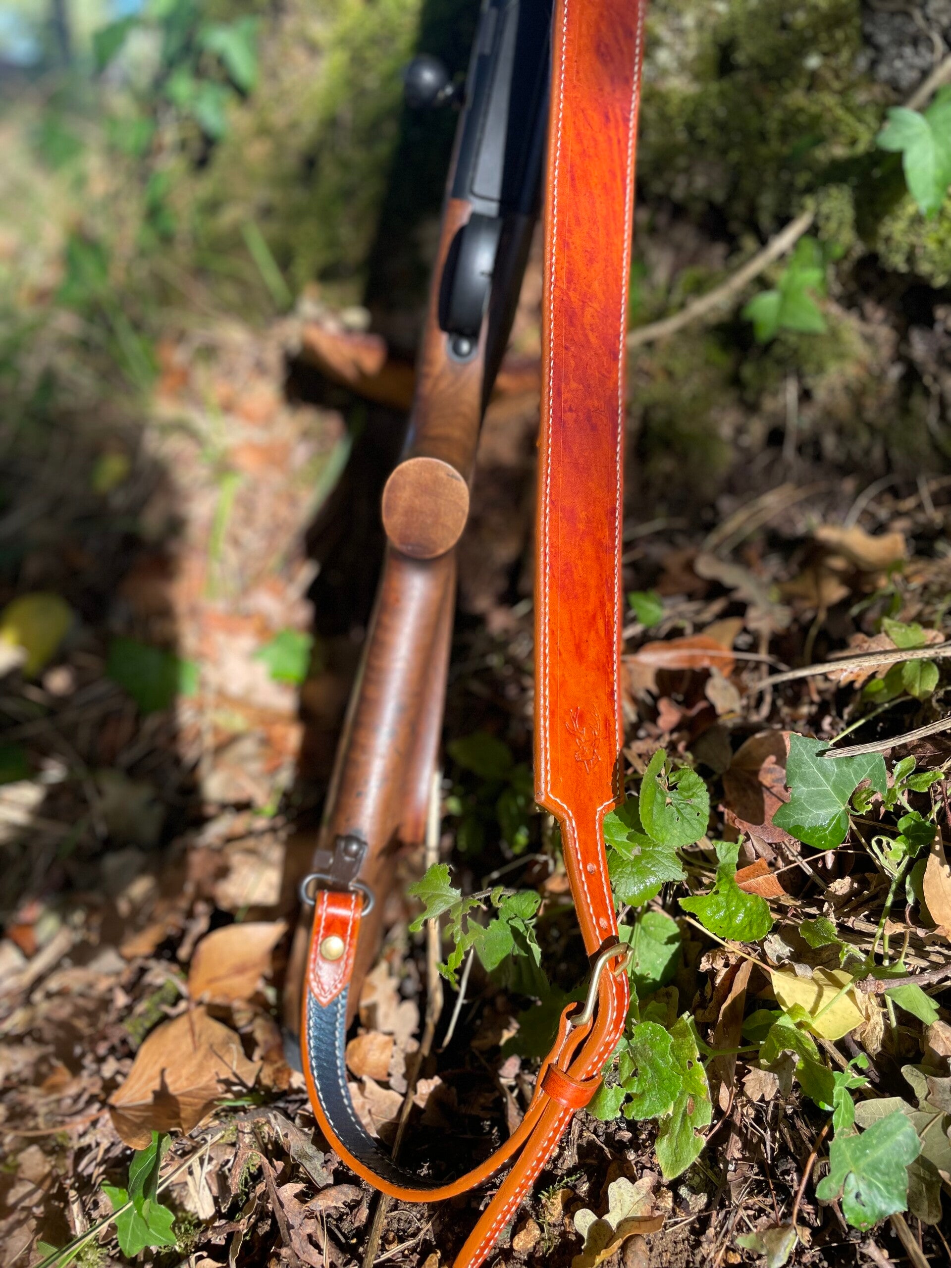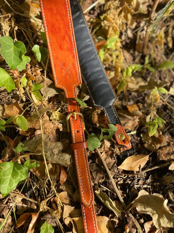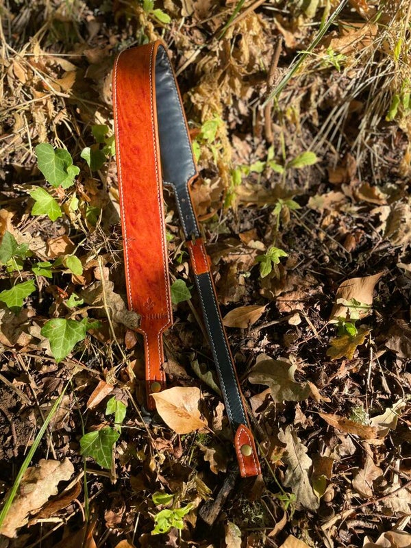 Entièrement cousue à la main, point par point au fil d'en et au point sellier, rendant cette bretelle indestructible. Boucle en laiton massif.